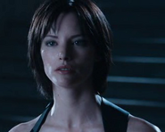 Resident Evil Apocalypse Valentine - Sienna Guillory - Afterlife with the red spider strapped to her.